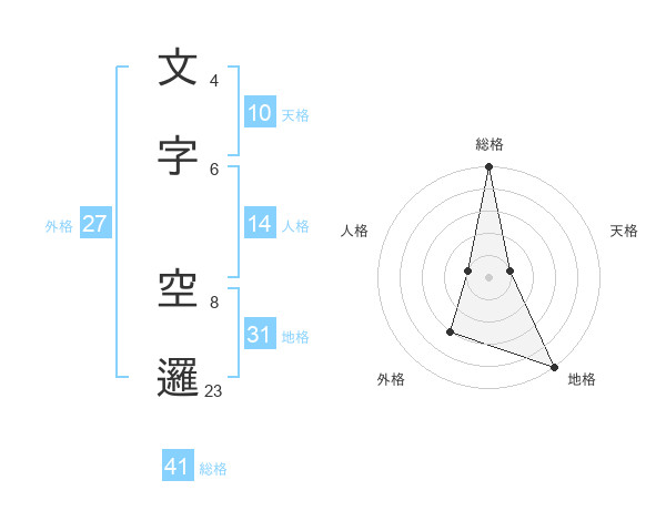 文字 空邏さんの総格は41画の5点!