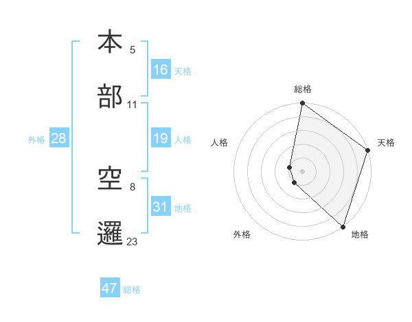 本部 空邏さんの総格は47画の5点!