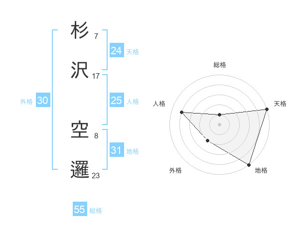 杉沢 空邏さんを姓名の画数から五運を鑑定