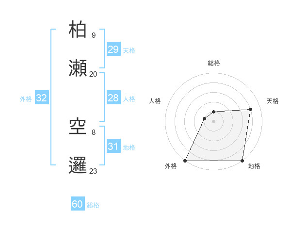 柏瀬 空邏さんの総格は60画の1点!
