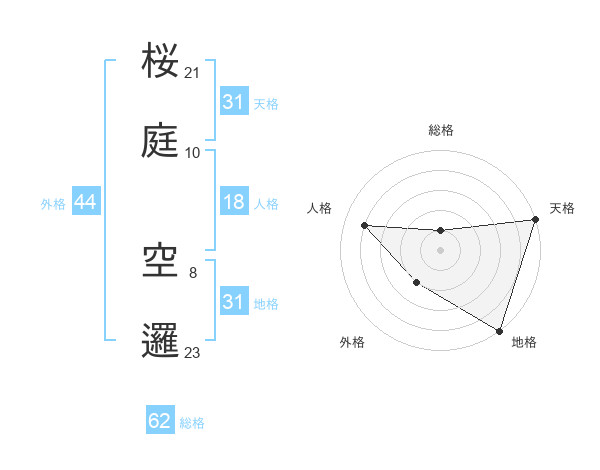 桜庭 空邏さんの天格は31画の5点!