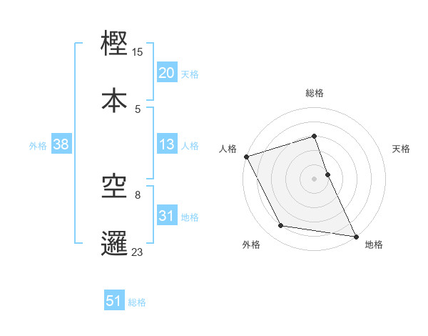 樫本 空邏さんの総格は51画の3点!