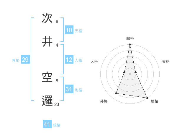 次井 空邏さんの総格は41画の5点!