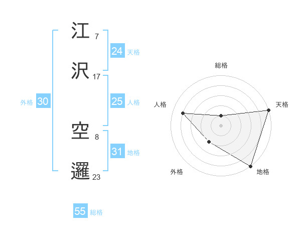 江沢 空邏さんを姓名の画数から五運を鑑定