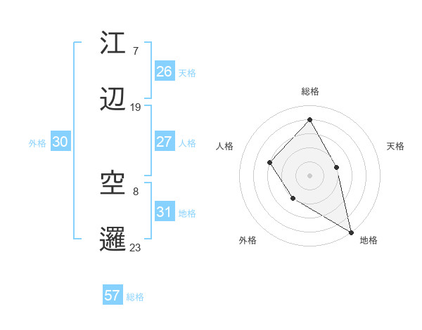 江辺 空邏さんの総格は57画の4点!