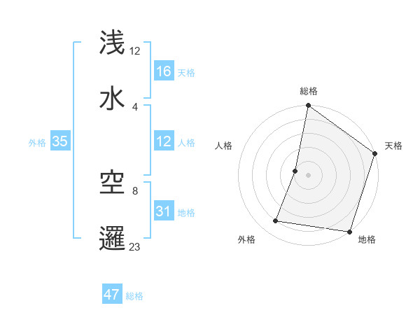 浅水 空邏さんの総格は47画の5点!