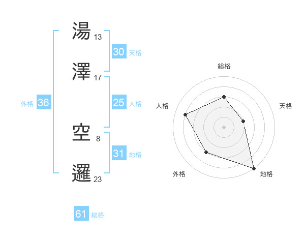 湯澤 空邏さんの総格は61画の3点!