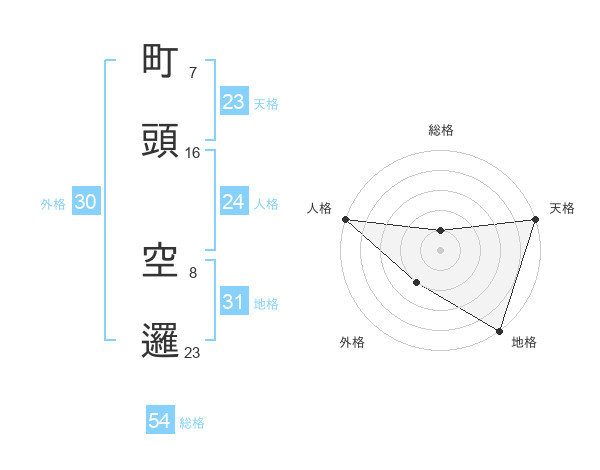 町頭 空邏さんの地格は31画の5点!