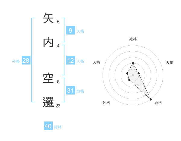 矢内 空邏さんの総格は40画の2点!