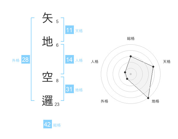 矢地 空邏さんの地格は31画の5点!