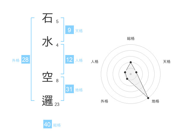 石水 空邏さんの総格は40画の2点!