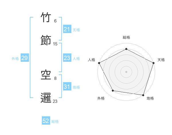 竹節 空邏さんを姓名の画数から五運を鑑定