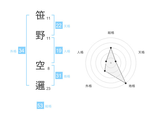 笹野 空邏さんを姓名の画数から五運を鑑定