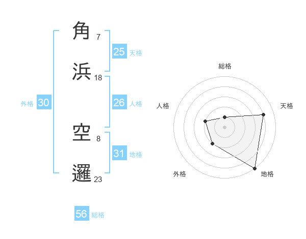 角浜 空邏さんの総格は56画の1点!