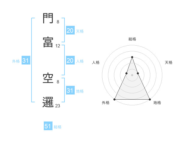 門富 空邏さんの総格は51画の3点!