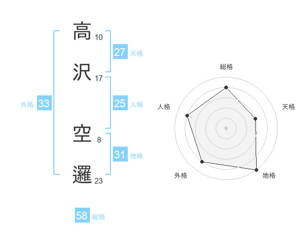 高沢 空邏さんを姓名の画数から五運を鑑定