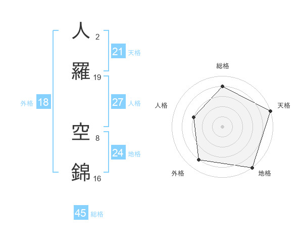 人羅 空錦さんを姓名の画数から五運を鑑定