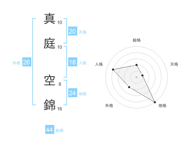 真庭 空錦さんの総格は44画の2点!