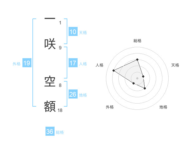 一咲 空額さんを姓名の画数から五運を鑑定