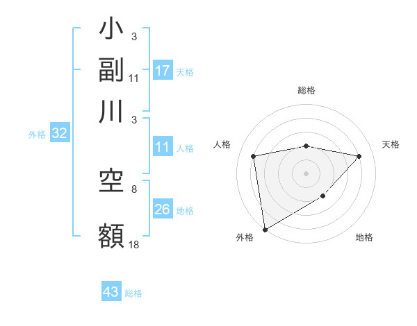 小副川 空額さんの天格は17画の4点!