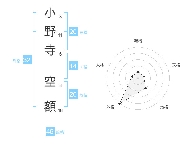 小野寺 空額さんの総格は46画の1点!
