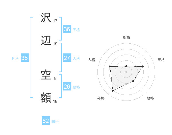 沢辺 空額さんの地格は26画の2点!