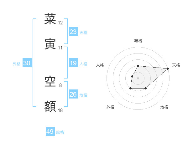 菜寅 空額さんを姓名の画数から五運を鑑定