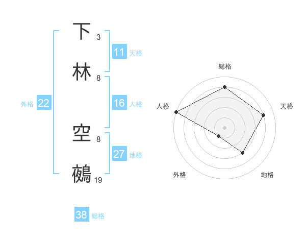 下林 空鵺さんを姓名の画数から五運を鑑定