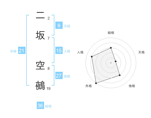 二坂 空鵺さんを姓名の画数から五運を鑑定