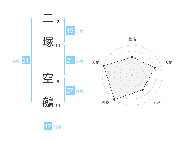 二塚 空鵺さんを姓名の画数から五運を鑑定