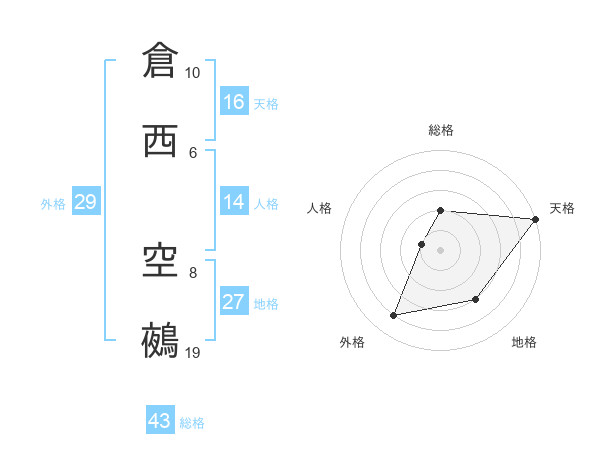 倉西 空鵺さんを姓名の画数から五運を鑑定