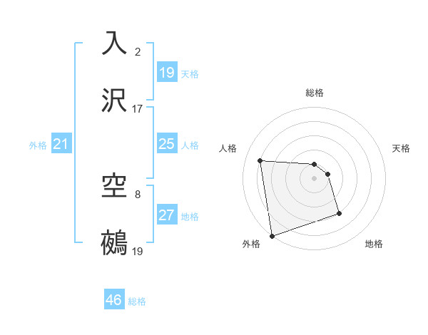 入沢 空鵺さんを姓名の画数から五運を鑑定