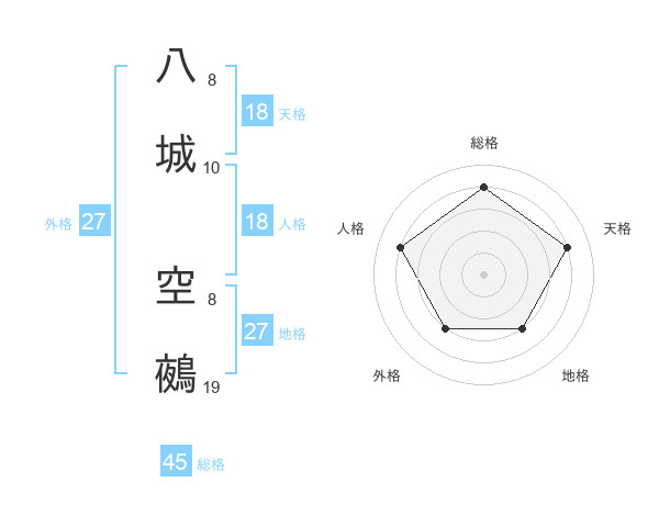 八城 空鵺さんの総格は45画の4点!