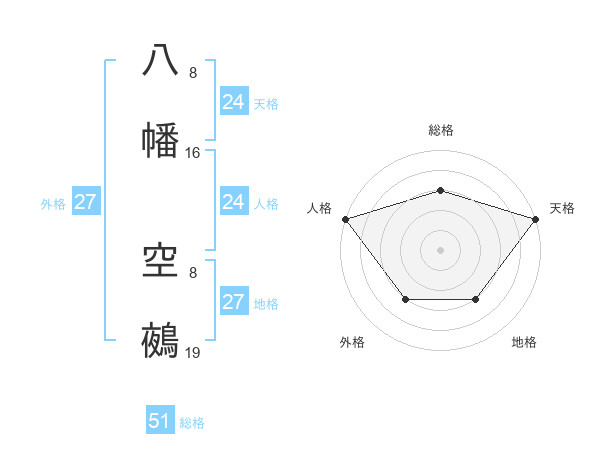 八幡 空鵺さんの総格は51画の3点!