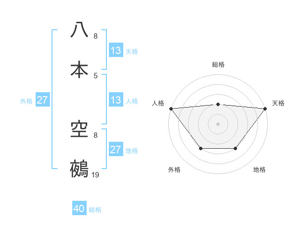 八本 空鵺さんの天格は13画の5点!
