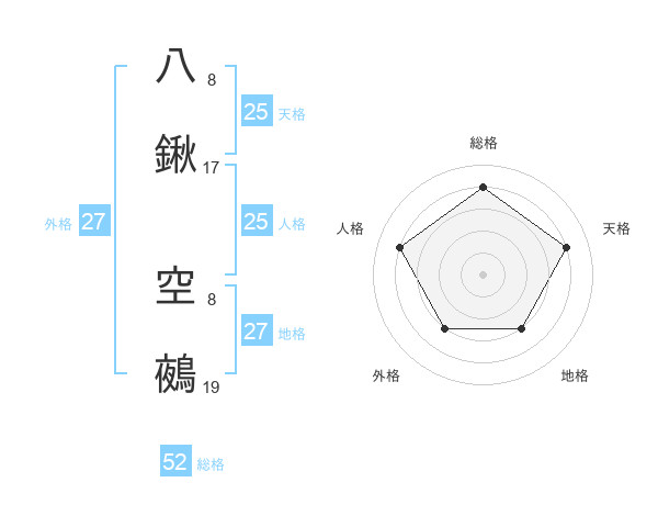 八鍬 空鵺さんの総格は52画の4点!