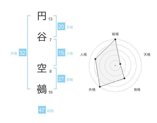 円谷 空鵺さんの総格は47画の5点!