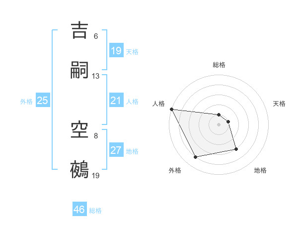 吉嗣 空鵺さんを姓名の画数から五運を鑑定
