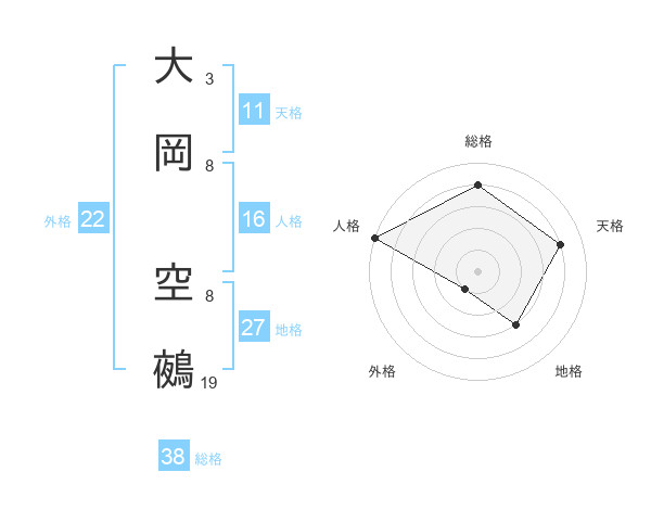 大岡 空鵺さんの総格は38画の4点!