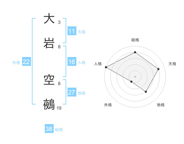 大岩 空鵺さんの総格は38画の4点!
