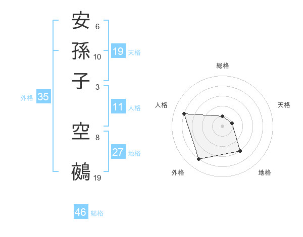 安孫子 空鵺さんの外格は35画の4点!