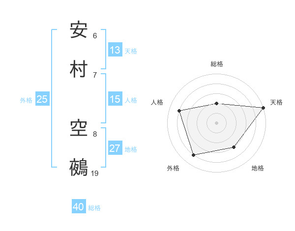 安村 空鵺さんを姓名の画数から五運を鑑定