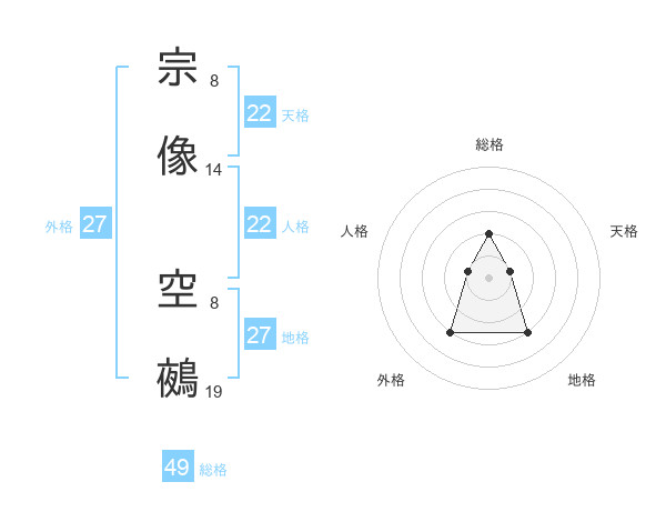 宗像 空鵺さんの総格は49画の2点!
