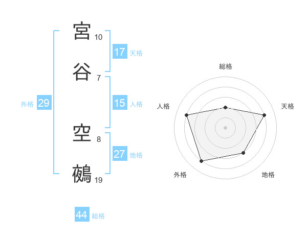宮谷 空鵺さんの総格は44画の2点!