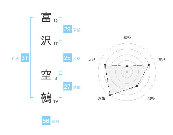 富沢 空鵺さんの外格は31画の5点!