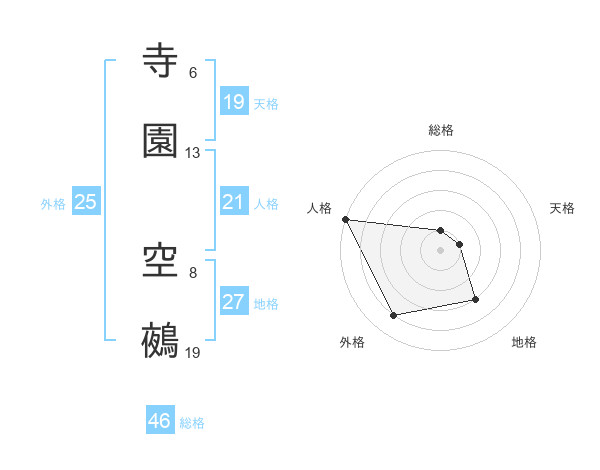 寺園 空鵺さんを姓名の画数から五運を鑑定