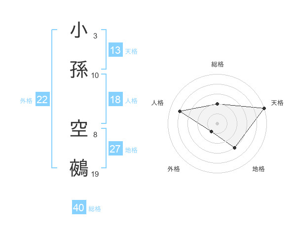 小孫 空鵺さんを姓名の画数から五運を鑑定