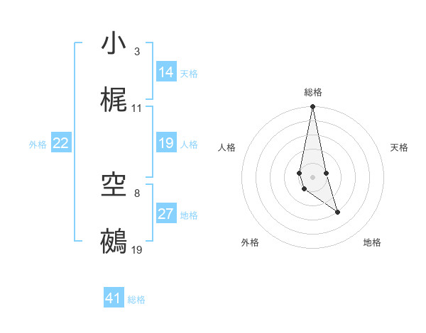 小梶 空鵺さんを姓名の画数から五運を鑑定