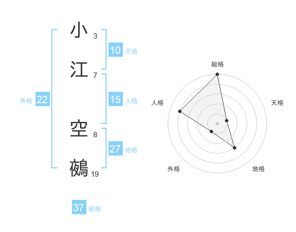 小江 空鵺さんの総格は37画の5点!