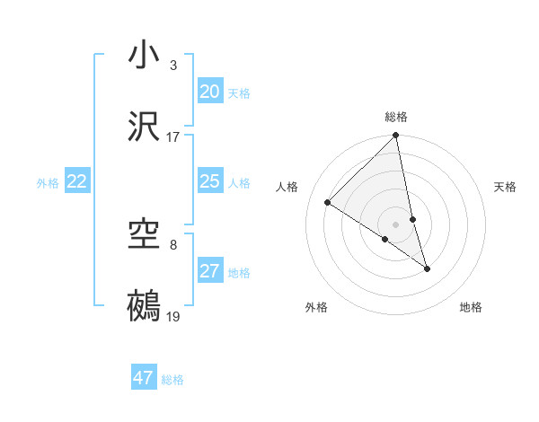 小沢 空鵺さんの総格は47画の5点!
